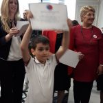 Bayraklı İzmirliler Derneğinin düzenlediği “Çocuk Gözüyle 23 Nisan” konulu resim yarışmasında Okul öncesi A şubesi öğrencimiz Ada Kabakçıoğlu’nun eseri İzmir birincisi oldu. Öğrencimiz ödülünü Görsel Sanatlar Öğretmeni Yasemin Mutlu’nun da katıldığı törende dernek yetkililerinden aldı.