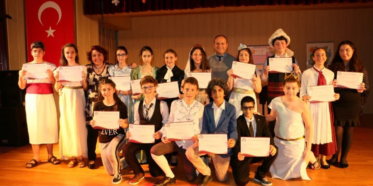 Okul Koordinatör Müdürü Murat Zorluer, oyunda görev alan öğrencilerini tek tek tebrik ederek başarı belgelerini verdi.