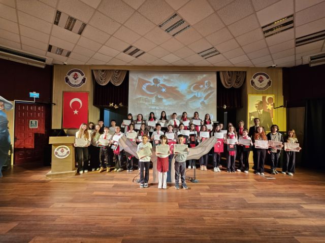 “İstiklal Marşı Oratoryosu”nun sahnelendiği törenlerde “Korkma Gençliğin Ruhu Burada” konulu şiir, kompozisyon ve resim yarışmalarında dereceye giren öğrencilerimize ödülleri Okul Koordinatör Müdürümüz Derya Aksakal ve İlkokul Ortaokul Müdürümüz Çağatay Durgar tarafından verildi.