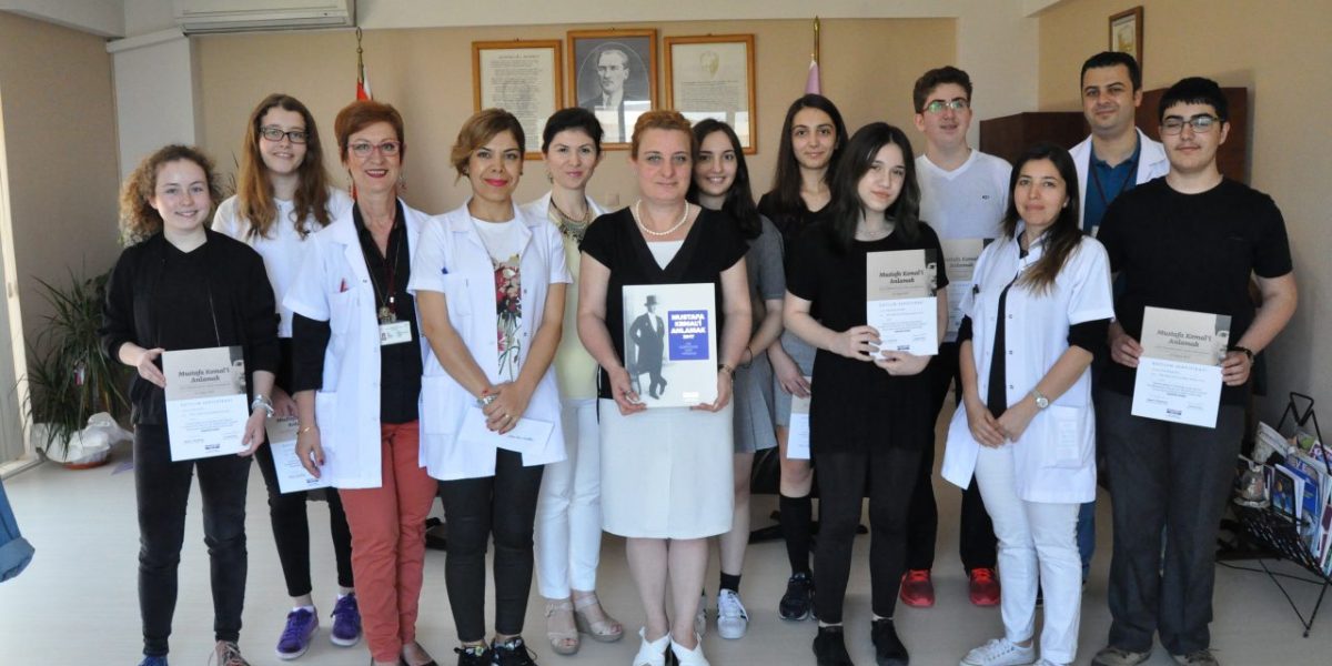 İstanbul Dudullu Organize Sanayi Bölgesi Müdürlüğü tarafından Adana-İzmir-Samsun çapında açılan “Mustafa Kemal’i Anlamak” adlı ‘Lise Öğrencileri Eser Yarışması’na katılan öğrencilerimiz teşekkür belgelerini Okul Müdürleri Tülay Yazgan’ın elinden aldı.