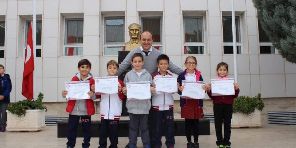 1 Aralık Cuma günü düzenlenen bayrak töreni öncesi farklı branşlarda okulumuzu başarıyla temsil eden öğrencilerimize başarı belgeleri okul müdürleri tarafından takdim edildi. İlkokul töreninde “Öğretmenim ve Ben” konulu resim yarışmasında sınıflar bazında dereceye giren öğrencilerimiz ile Türkiye Artistik Buz Pateni Şampiyonasında Türkiye 3.’sü olan Masal Oran ve Polonya’da düzenlenen “Always Green, Always Blue” adlı resim yarışmasında eserleri sergilenmeye değer bulunan Ege Armutlu, Mine Yılmazel ile Masal Oran’a belgeleri takdim edildi.