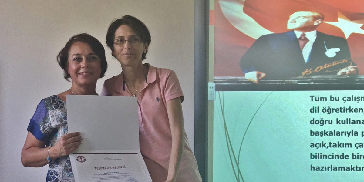 İlkokul ve Ortaokul İngilizce Zümre Başkanı Özlem Gönen, Hizmet içi Eğitim Seminerleri kapsamında yaptığı sunumda okulumuzda 21. yüzyıl dil becerilerini geliştirmeye dönük “Avrupa Dilleri Ortak Çerçeve Planı”na uygun olarak yürütülen İngilizce eğitim programı hakkında bilgi verdi. İngilizce zümresi olarak sürekli yenilenen kaynaklarla destekledikleri yabancı dil eğitiminde uyguladıkları ve öğrencilere yansımasının fevkalade olumlu olduğunu gözlemledikleri MUN, JMUN, WSC, TED-ED, FILM MAKING çalışmaları hakkında bilgi verdi. Öğrenilen İngilizceyi uluslararası düzeyde ölçen TOEFL ve CAMBRIDGE sınavlarında öğrencilerimizin aldığı sevindirici sonuçlardan da söz eden Gönen, bu yıl daha önceki yıllarda da uyguladığımız proje bazlı çalışmalara ağırlık vereceklerinin altını çizdi. verdiği bilgiler için teşekkür eden Müdür Başyardımcısı Tuna Boztaş, Gönen’e teşekkür belgesi takdim etti.