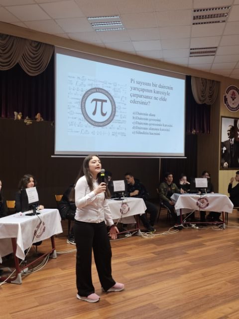 Pi Günü etkinlikleri kapsamında Lise Matematik Zümremiz tarafından “Pi Günü Bilgi Yarışması” düzenlendi. 13 Mart 2026 Cuma günü okul konferans salonunda gerçekleştirilen etkinlikte öğrencilerimiz, matematik ve Pi sayısı ile ilgili soruları yanıtlayarak bilgilerini sınama fırsatı buldu.