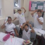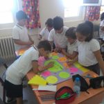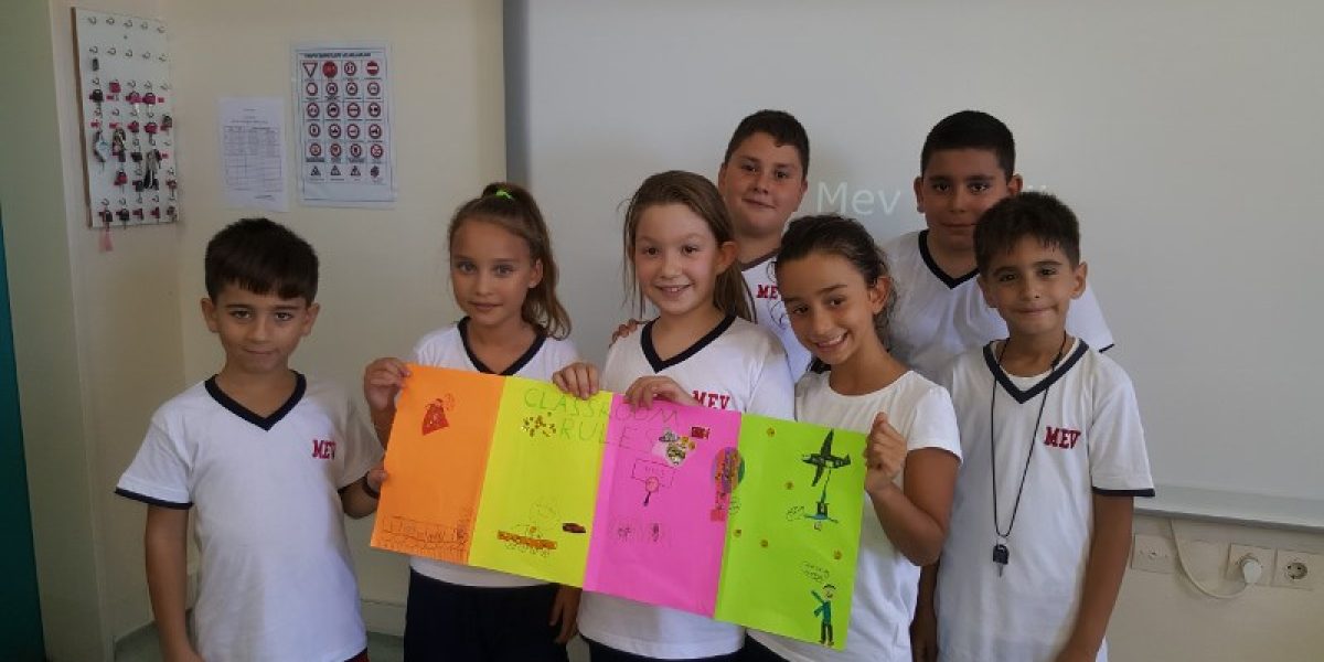 4. sınıflarımız ise İngilizce aktivite odasında sınıf kuralları konusunu beyin fırtınası yöntemi ile işlediler. Ardından grup çalışması ile sınıf kurallarını anlatan bir poster tasarladılar.