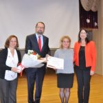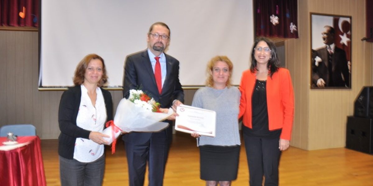 Akbulut’a teşekkür belgesini Okulu Müdürü Tülay Yazgan ve teşekkür çiçeğini Koor. Psikolojik Danışman Nazan Eryürek takdim etti.
